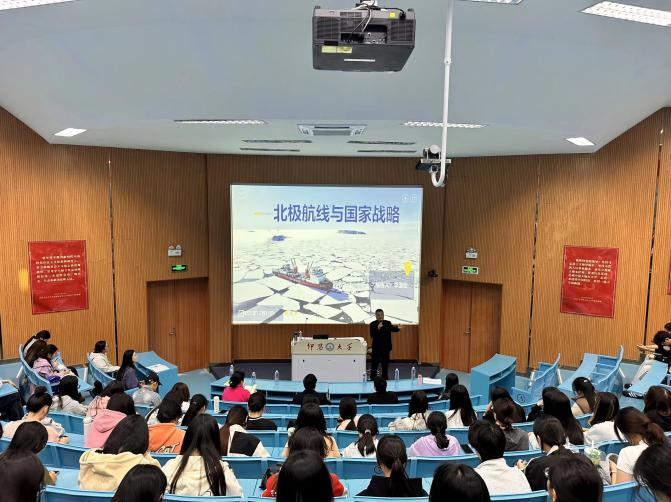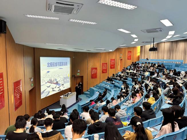 在经济价值分析环节,李教授结合案例指出,北极航线不仅能大幅减少传统航道的时间与能源消耗,更将带动沿线能源开发、港口建设、船舶制造等产业链协同发展;在战略层面,他深入剖析了北极航线的地缘政治意义,指出随着俄罗斯、美国、加拿大等北极国家加速军事部署与资源争夺,北极已成为大国博弈的新焦点,并通过对比各国北极战略的异同,揭示了资源控制、航道主权与军事安全之间的复杂联动关系;针对中国的北极战略,他提出中国作为“近北极国家”,始终秉持“尊重、合作、共赢”原则,通过参与北极理事会、推动科研合作、投资基础设施等方式积极承担国际责任,还引用《中国的北极政策》白皮书内容,强调中国致力于构建和平、可持续的北极治理体系;在结论与展望部分,李教授总结道:“北极航线的开辟已不再是地图上的虚线,而是一条正在被激活的、兼具巨大经济潜力与深远战略意义的现实通道“北极物流”也必将带来新课题、新挑战”。