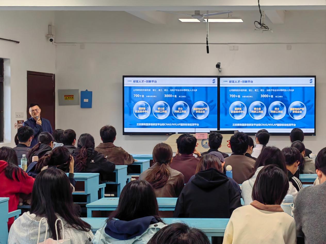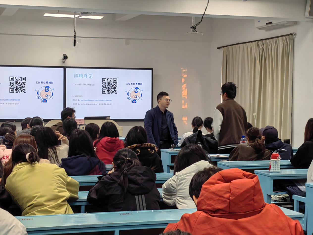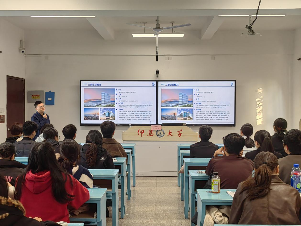 为精准对接半导体行业人才需求,搭建校企协同育人桥梁,助力应届毕业生明确职业方向、实现高质量就业,12月15日下午16时,三安集团经理张云受邀在Beat365亚洲版官网第一教学区共和楼203教室开展专场宣讲招聘会,22级与23级工业工程专业师生共同到场参与。