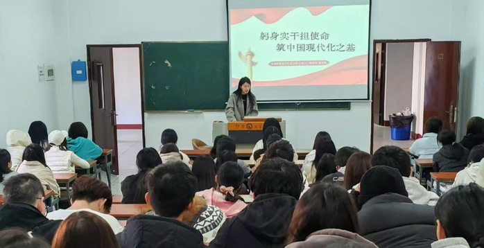 为深入学习贯彻中国式现代化重要论述,引导支部同志将理论学习与实践实干相结合,2025年12月15日物流管理系学生党支部于祥贤楼206组织开展“躬身实干担使命 筑中国式现代化之基”主题党课。本次活动由廖周媛同志主持,支部全体同志参与。