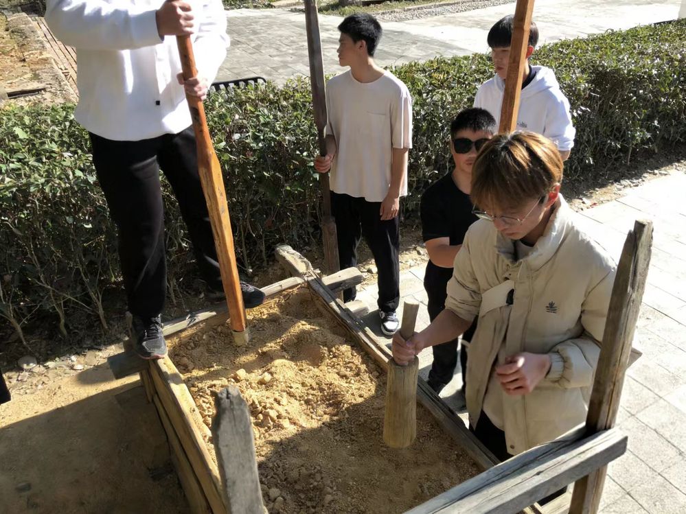 【实践】实践队员体验夯土制作